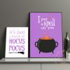 A set of 30 trendy Halloween printables, in shades of orange, purple, black and white. Includes typography prints, cute ghost prints, Hocus Pocus themed prints, and many more!